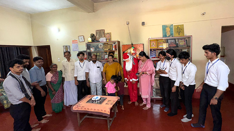 In Calicut, the institute organized a visit to the Poor Home Old Age Home, where the students and staff served a hearty meal to the elderly residents. The event saw active participation from the faculty, staff, and students, who ensured that the elderly had a memorable day. The Chief Guest, Mr. Saji Shinob, S. I. of Police, addressed the gathering, emphasizing the importance of community care and the value of supporting the elderly. The day was made even more . Spreading the Joy of Christmas