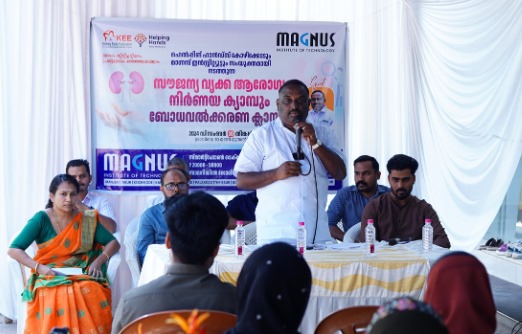 Magnus Institute, Manjeri, organized a Free Kidney Evaluation Camp, in association with Helping Hands, Calicut, with the aim of raising awareness about kidney health and providing essential screening services to the local community. The success of this event was largely due to the involvement of the students of Magnus Institute. Demonstrating nearby homes and personally inviting people to the event. They also handled the registration process, ensuring that all participants were signed up and ready to undergo the evaluation. The students’ active participation not only helped ensure the smooth execution of the event but also brought the community together in a way that made people feel more comfortable seeking health support. The camp was a significant success, with over 200 people having the opportunity to check their kidney health. The event was inaugurated by the Chief Guest, V.P. Feroz, the Vice Chairman of Manjeri Municipality, who emphasized the importance of regular health screenings and preventive healthcare in improving community well-being.